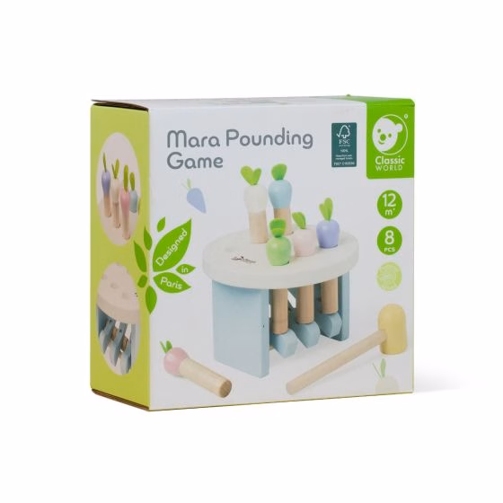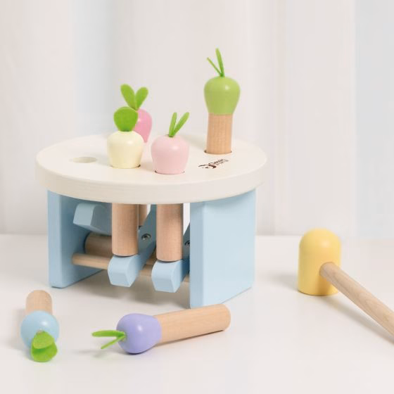 You can make playtime both fun and educational with this delightful carrot pounding game! Featuring colourful carrots, children can tap and pound to see how different levels of force create varying results — a playful way to learn cause and effect.