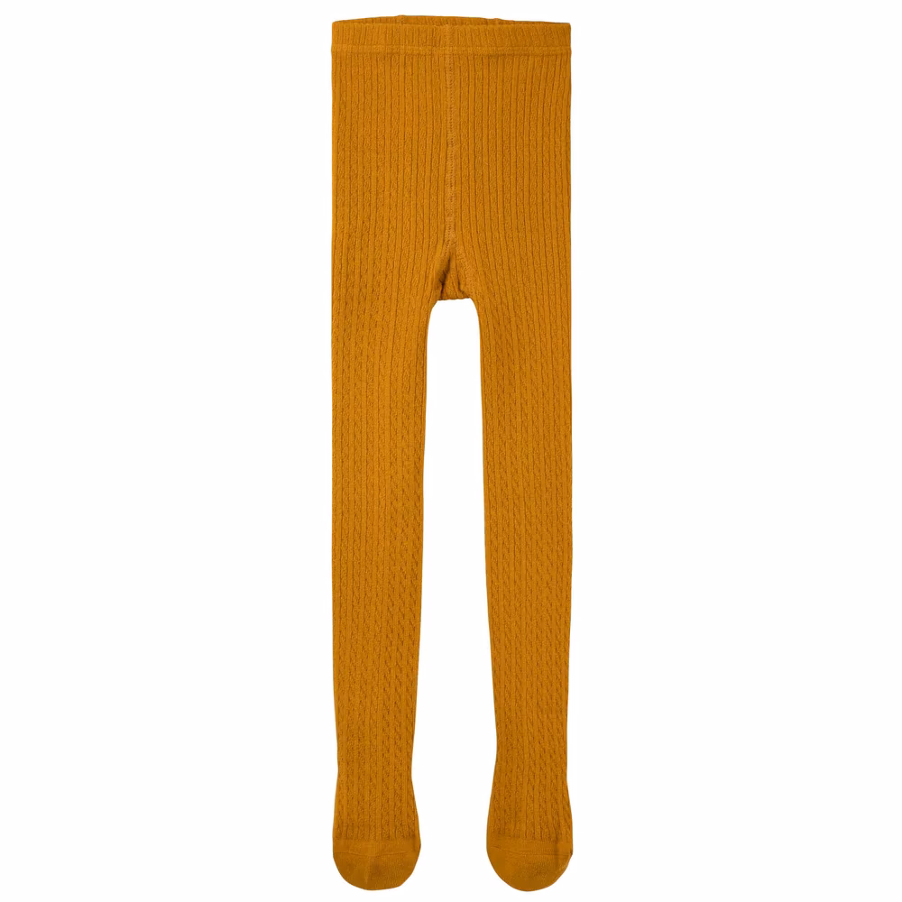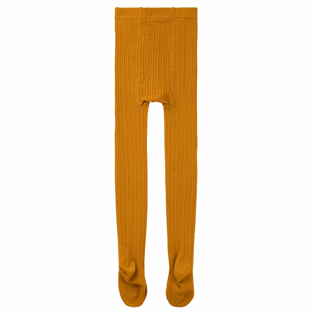 Cable Knit Ribbed Tights- Mustard
