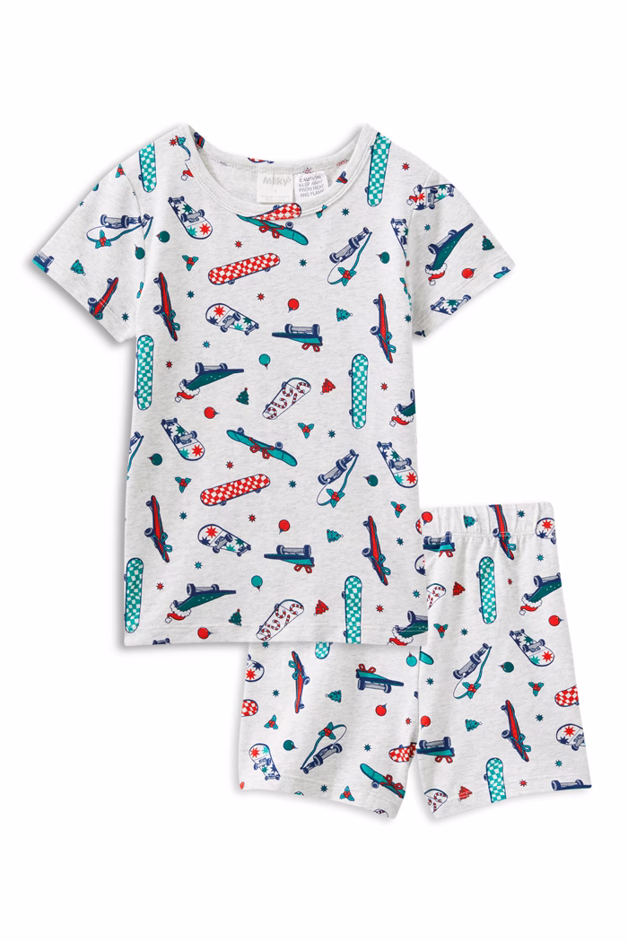 Looking for a comfy and cute sleepwear set this Christmas? Look no further than these PJs! Super soft cotton elastane that’s hard-wearing ,they will last wash after wash. These PJ’s are a short and tee combo, with a silver marle base with all over Christmas print. It’s the perfect way to get in the festive spirit!