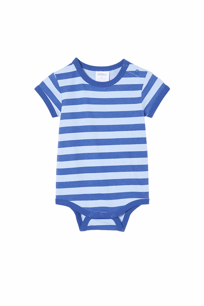 Milky Clothing Bubbysuits are the essential staple for your little one’s wardrobe. This cute stripe bubbysuit is a great go-to for any occasion! It’s got a neat fit for layer, and its short sleeves make it a summer day essential or layer up in the cooler days.