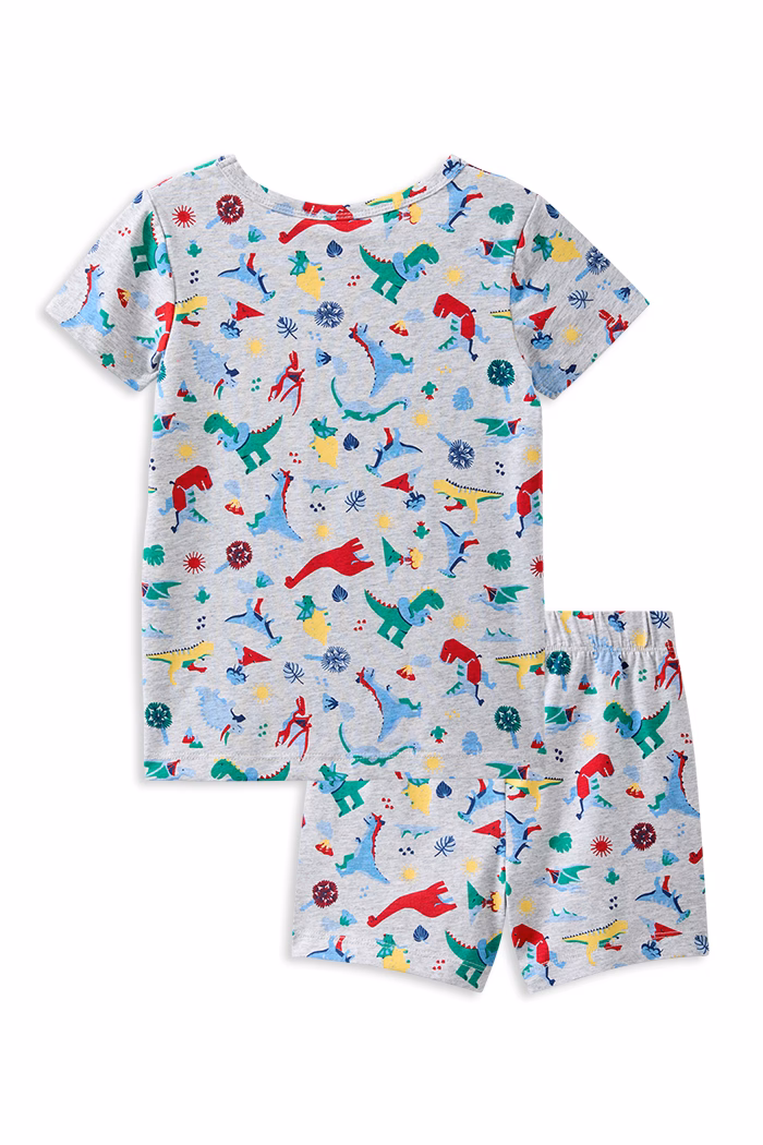 Milky Clothing Dinosaur PJs bring a whole new level of comfort to your little ones sleep routine. Crafted from ultra-soft cotton elastane, these PJs offer both durability and shape retention, ensuring they’ll stay looking great, wash after wash. The set features a short and tee combo, both made from a blue base fabric with an all-over playful print. Perfect for relaxing or unwinding, these PJs combine comfort and style for a cozy night’s sleep.