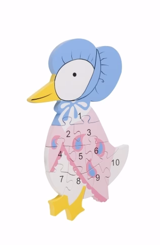 A brand new addition to our Peter Rabbit collection. Introduce little ones to numbers 1-10 with this lovely Jemima Puddle-Duck puzzle. Painted in bright colours and printed with clear text, its chunky pieces are just right for small hands to grasp.