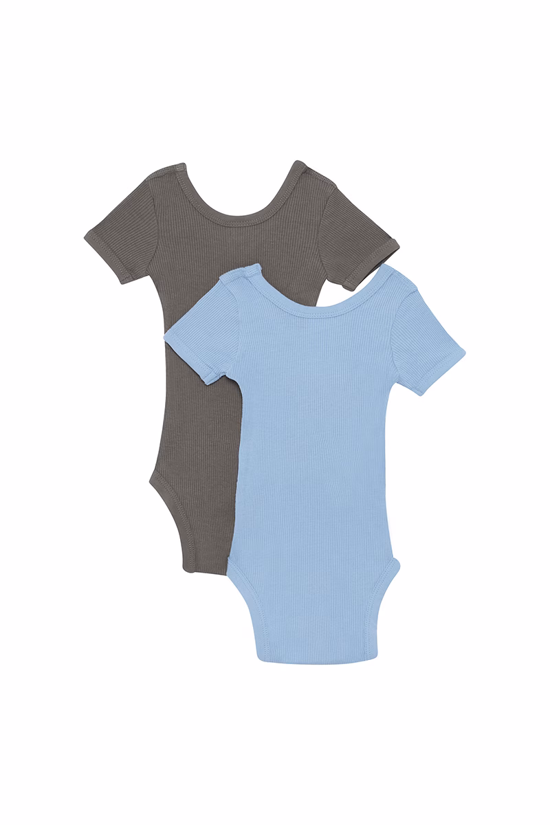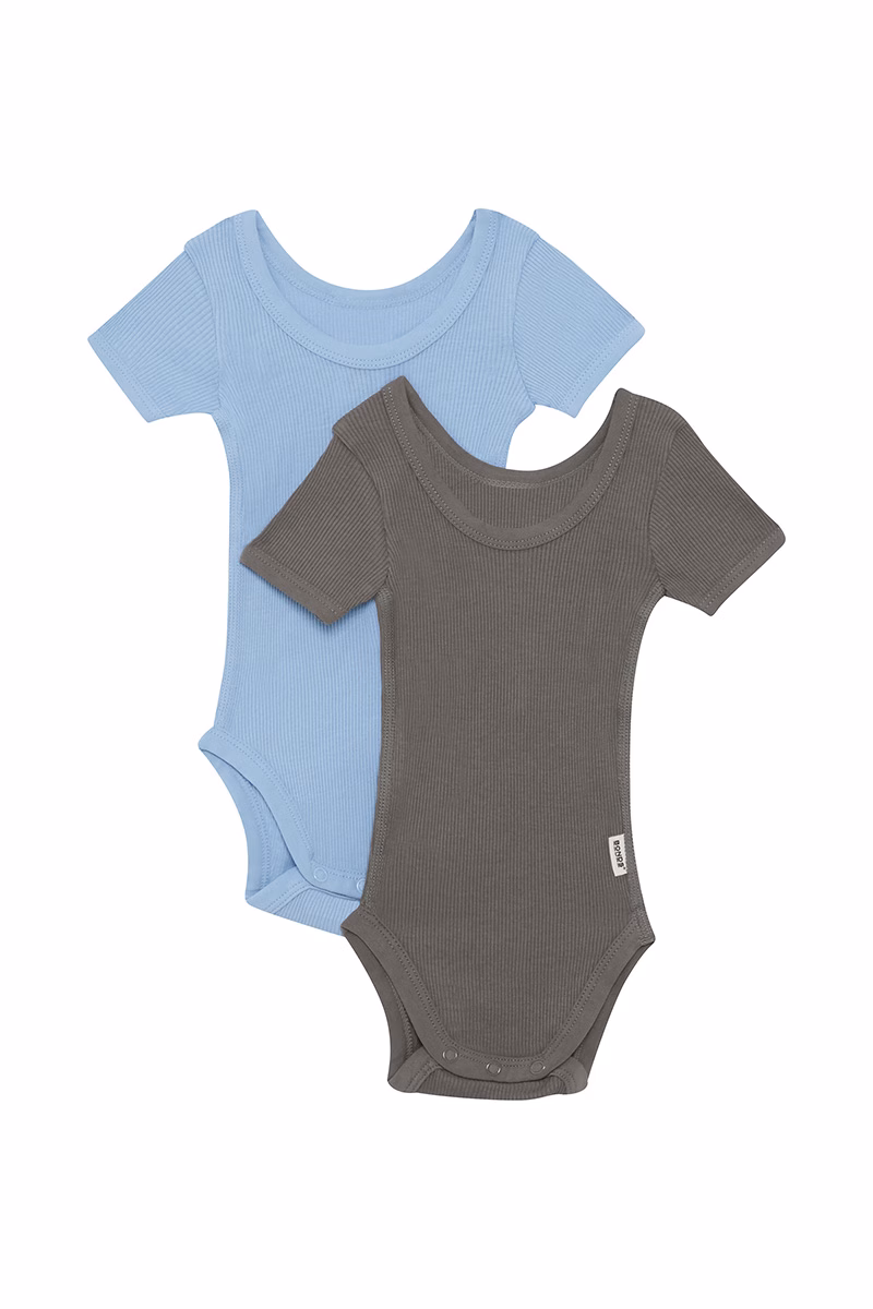 Light Blue/Charcoal Organic Rib S/S Bodysuit 2pk