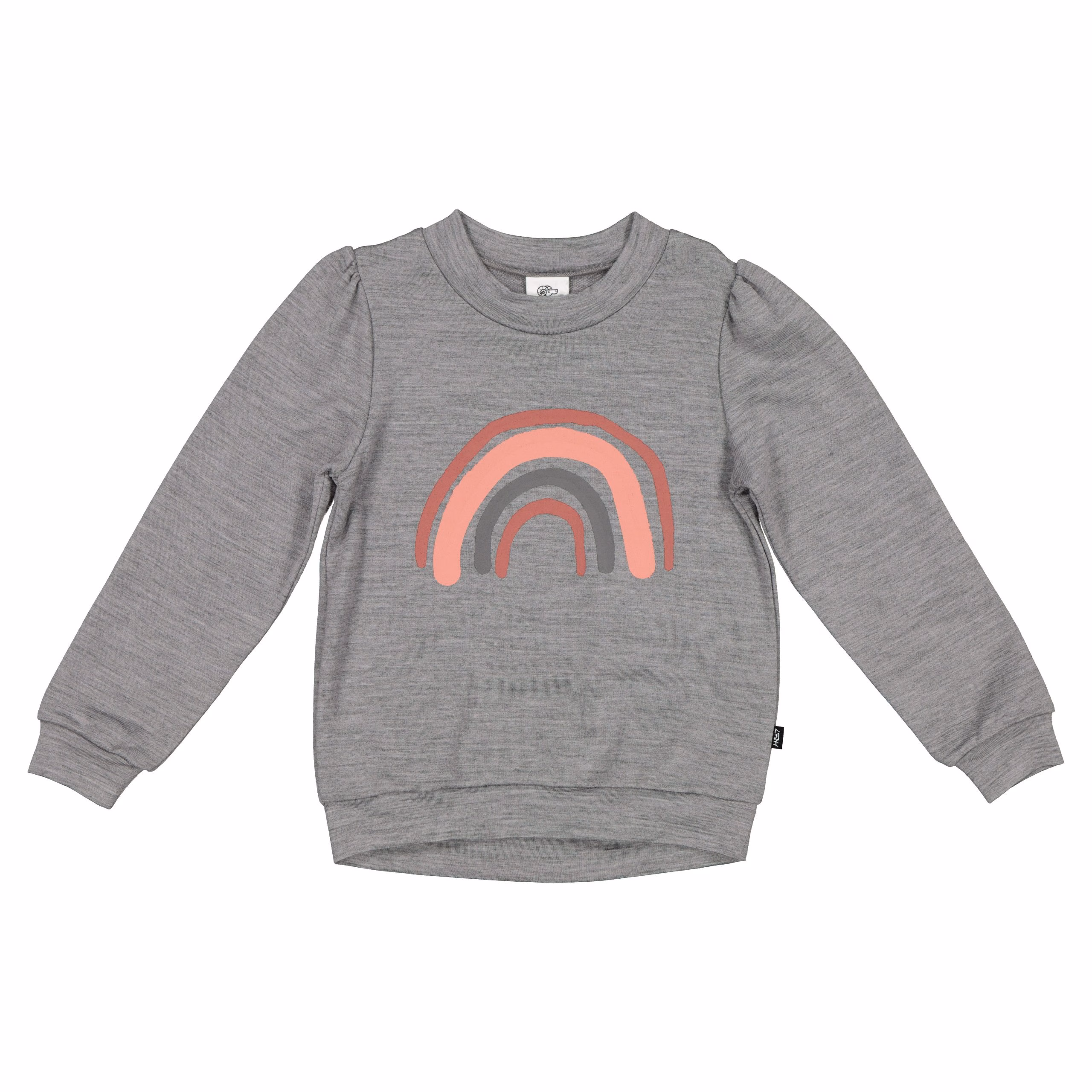 LFOH’s Lulu Sweatshirt is made from a thick 300gsm Merino Sweatshirt unbrushed fleece so will keep little bodies snuggly and warm in Winter weather. The front chest features a multicolour rainbow print with slight puff sleeve for extra cuteness. Thick cuff bands keep wrists warm and protected from chilly temps.