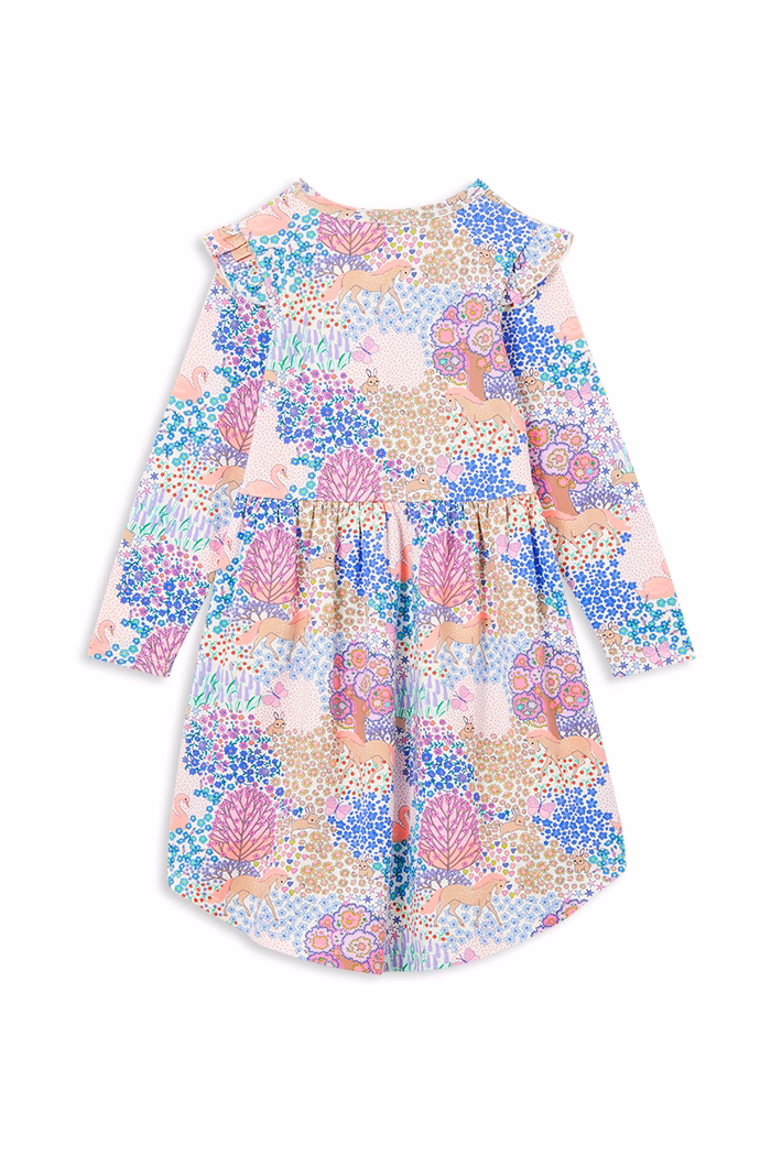 These sweet Hi-Lo Dresses are super cute on. With an all over print this sweet dress is made with style and comfort in mind. Shoulder frills and a floaty hi-lo hemline, choose to layer with tights or go without for trans-seasonal dressing.