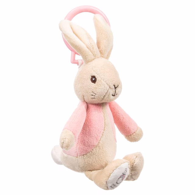Watch Flopsy jiggle! Designed to keep baby entertained, the Peter Rabbit Jiggle toy is fun, tactile and engaging. The Jiggle toy is the perfect size for little hands to grasp and pull down, then watch them giggle with laughter as Flopsy jiggles back up. The 21cm toy comes with an attachable hoop making it perfect on-the-go companion. What’s more, it can easily be attached to a pram, car seat or even a cot and is suitable from birth.