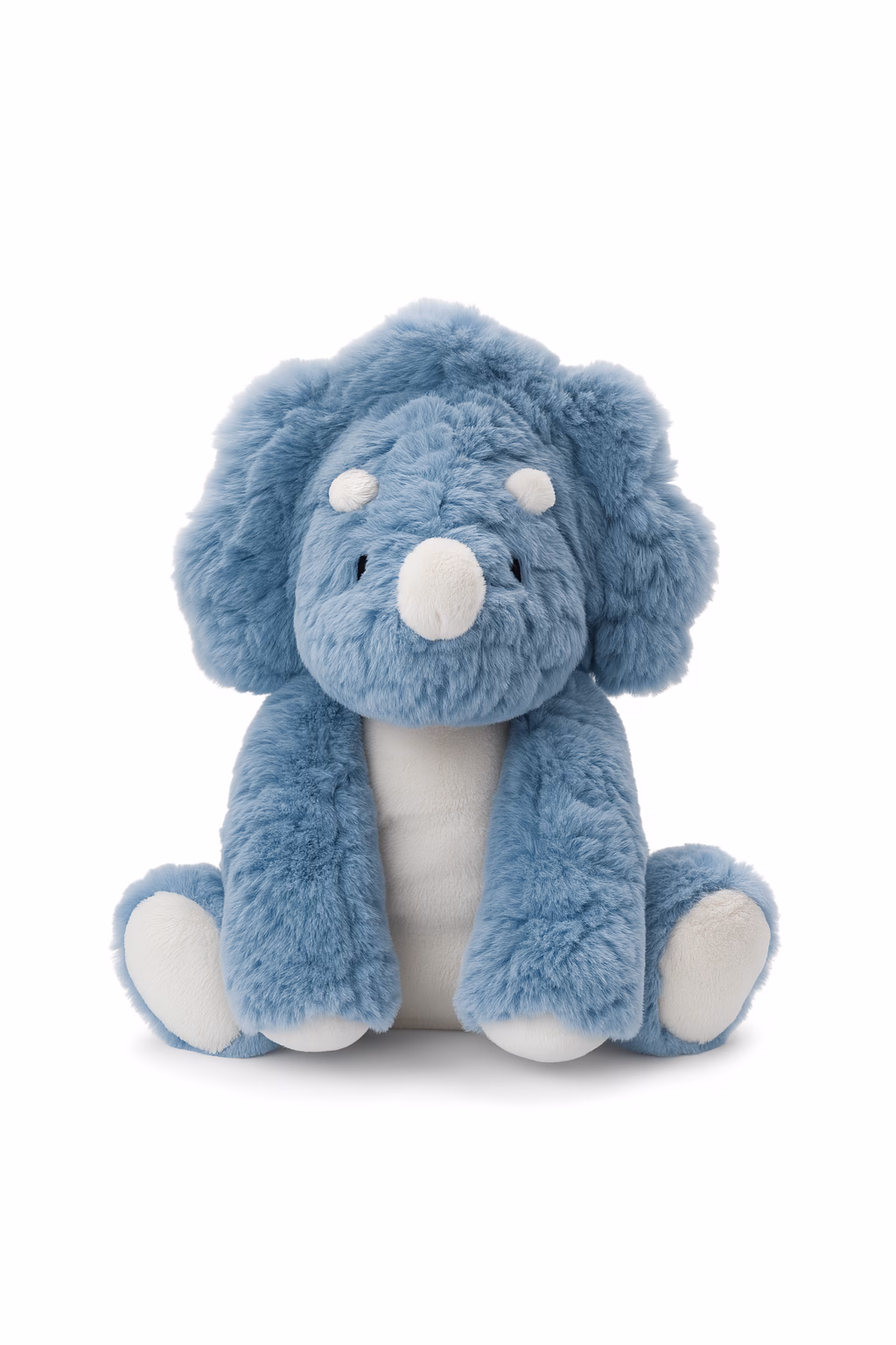 Trixie may have three mighty horns, but this gentle dino is all about snuggles, not stomps. With a soft, cuddly body and playful spirit, Trixie loves joining friends Roary the T-Rex and Lenny the Long Neck for roarsome adventures by day and cosy dreams by night. A prehistoric pal full of comfort and charm, ready to be a loyal friend for every little explorer.