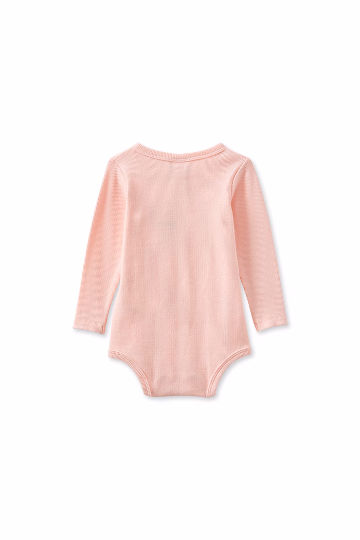 Milky Clothing Whisper Rose Bubbysuit—a versatile staple for any season! This charming bubbysuit features an adorable snap detail at the center front, adding a touch of style to your little one’s wardrobe.