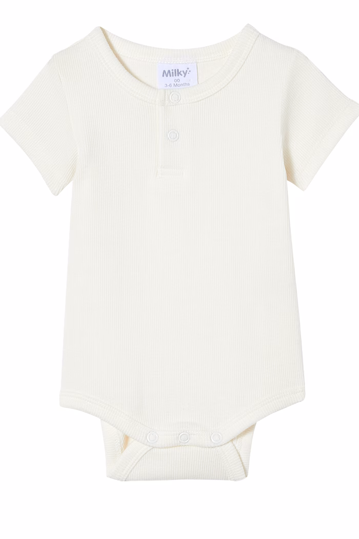 Milky Clothing Rib Bubbysuits are the essential staple for your little one’s wardrobe. This rib bubbysuit is a great go-to for any occasion! It’s got a neat fit for layer, and its short sleeves make it a summer day essential or layer up in the cooler days