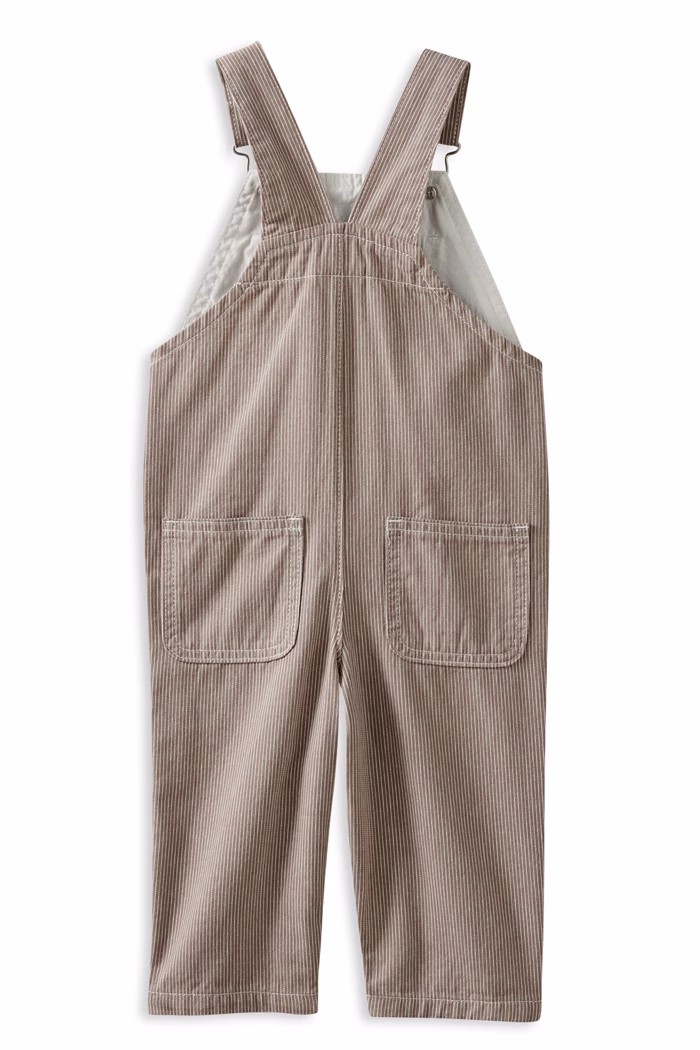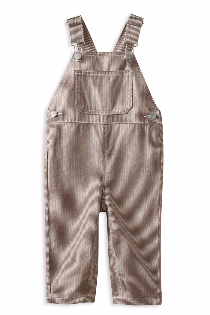 Scout Stripe Overall is the ultimate in cuteness overload! Crafted from a durable, thick woven fabric, these charming latte stripe overalls are perfect for protecting little crawling knees while adding a stylish touch to any outfit.